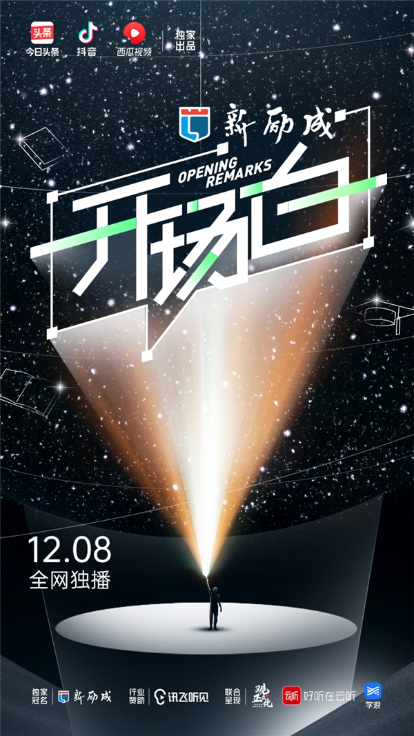 寒冬已至,文化熱潮悄然卷席。由白巖松發(fā)起、新勵成獨(dú)家冠名的高品質(zhì)文化演講節(jié)目《開場白》將于12月8日在抖音、西瓜視頻、今日頭條等平臺正式首播!《開場白》不僅匯集了白巖松、鄧亞萍、俞敏洪、劉擎、王佩瑜、酈波、楊倩等眾人期待已久的重量級嘉賓,還采用了演講+觀點(diǎn)battle的形式,以熱點(diǎn)話題及文化大咖背景與全社會青年緊密對話。