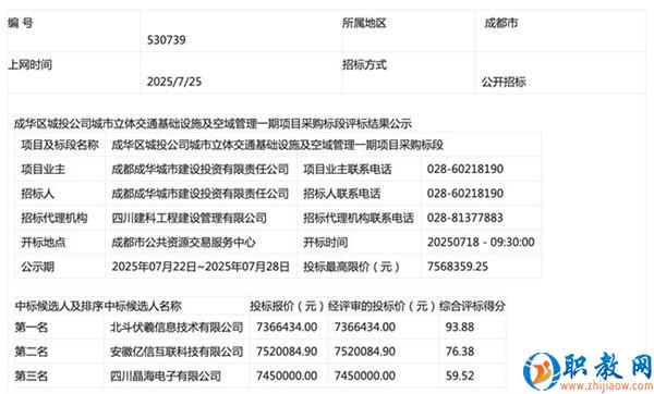 (截圖自四川招標(biāo)網(wǎng)) 此外,記者注意到,四川招標(biāo)網(wǎng)近日發(fā)布的《成華區(qū)城投公司城市立體交通基礎(chǔ)設(shè)施及空域管理一期項(xiàng)目采購(gòu)標(biāo)段評(píng)標(biāo)結(jié)果公示》顯示,北斗伏羲以736.64萬(wàn)投標(biāo)價(jià)格擬中標(biāo)。此前,北斗伏羲還分別以9995.5萬(wàn)和9321萬(wàn)價(jià)格中標(biāo)天津北辰區(qū)低空空域信息網(wǎng)系統(tǒng)工程項(xiàng)目和長(zhǎng)春低空智聯(lián)網(wǎng)基礎(chǔ)設(shè)施軟件采購(gòu)項(xiàng)目。 業(yè)內(nèi)人士樂(lè)觀表示,投資北斗伏羲,有望使學(xué)大教育在低空經(jīng)濟(jì)職業(yè)教育領(lǐng)域構(gòu)建完整產(chǎn)業(yè)鏈布局,并且有助于增強(qiáng)企業(yè)的盈利能力。“產(chǎn)業(yè)學(xué)院模式具備高度可復(fù)制性,能夠顯著提振合作伙伴與行業(yè)市場(chǎng)信心。長(zhǎng)期來(lái)看,隨著公司培養(yǎng)的專業(yè)人才持續(xù)反哺產(chǎn)業(yè)以及學(xué)大職教品牌影響力深化,其盈利路徑將更加多元,市場(chǎng)份額也將不斷擴(kuò)大。” 另?yè)?jù)分析,此次合作的更深層價(jià)值在于,學(xué)大教育將通過(guò)深度參與低空基礎(chǔ)設(shè)施與生態(tài)構(gòu)建開(kāi)辟新的增長(zhǎng)曲線,同時(shí)能夠?qū)⒐驹趯I(yè)領(lǐng)域的積淀延伸至國(guó)家戰(zhàn)略前沿,從而強(qiáng)化其在行業(yè)內(nèi)的領(lǐng)導(dǎo)地位。而學(xué)大教育廣泛的渠道資源,也有望加速北斗伏羲低空數(shù)字底座技術(shù)在諸多垂直領(lǐng)域的深度創(chuàng)新融合,進(jìn)而持續(xù)助推釋放技術(shù)社會(huì)化應(yīng)用的商業(yè)潛能。 聯(lián)系我時(shí)請(qǐng)說(shuō)明是在“職教網(wǎng)m.akrontaxi.com”看到的,謝謝! |