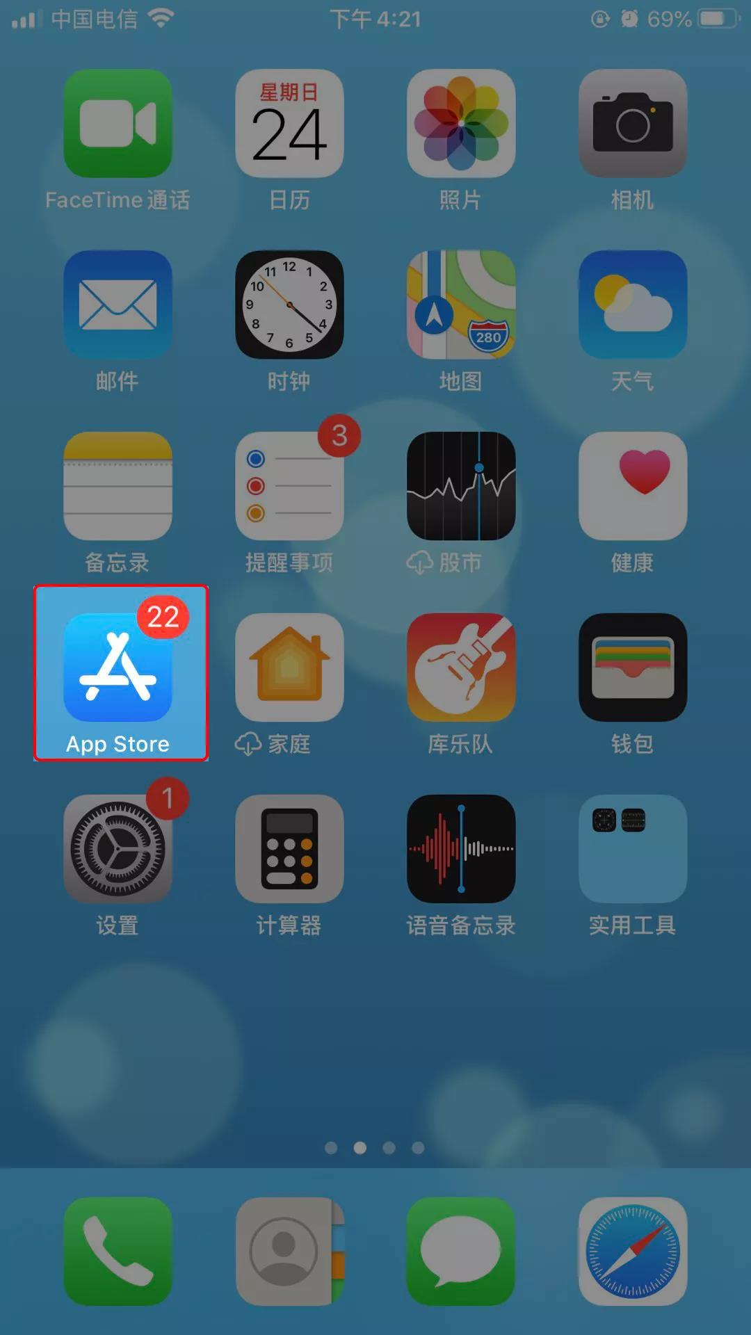 首先在手機(jī)找到App Store(蘋果手機(jī)唯一的軟件下載商店)