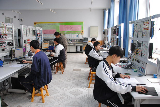 我校的電子技術(shù)應(yīng)用專業(yè),是省級骨干示范專業(yè),通過多年的專業(yè)建設(shè)和教學改革,建立起了符合用人單位要求的的課程體系 ,在理論教學方面增加新技術(shù)、新知識、新工藝,體現(xiàn)專業(yè)教學內(nèi)容的先進性,開設(shè)了《EDA技術(shù)》《Protel教程》《單片機系統(tǒng)》《PLC控制》《自動檢測技術(shù)》《C語言》等課程,在專業(yè)技能培訓方面,我校擁有建筑面積8810平方米的實驗樓,其中電工電子、電力拖動、家電綜合、電工技能、CAD、PLC(可編程控制器)、單片機仿真實驗室、制冷等近12個專業(yè)實驗室和模擬室,其中絕大多數(shù)實驗室具有較高的現(xiàn)代化水平,配套齊全,檔次高,設(shè)備利用率在95%以上。學校現(xiàn)有微機280余臺,微機專業(yè)教學用微機生均1人1臺,非微機專業(yè)生均達6人1臺,滿足了專業(yè)技能教學的需要。