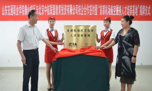 好消息,近日,山東交通職業(yè)學院泰山校區(qū)與北京中航聯(lián)盟教育投資有限公司校企合作簽約暨“首都機 場航空服務人才培養(yǎng)基地”揭牌儀式在校區(qū)四樓會議室隆重舉行??罩谐藙諏I(yè)成為學校下一步重點發(fā) 展專業(yè),也是近年來學生報名的熱門專業(yè)!