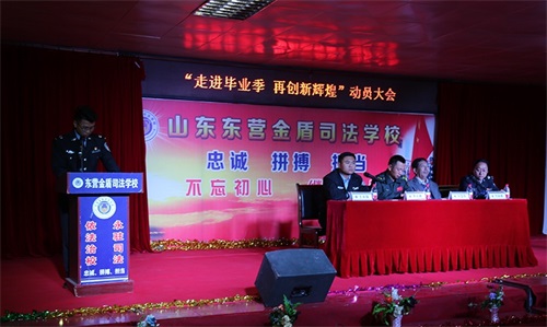 為營造良好的高考氛圍,動(dòng)員全體畢業(yè)生以良好的姿態(tài)投入緊張有序的復(fù)習(xí)中。10月22日下午,山東東營金盾司法學(xué)校畢業(yè)班全體師生齊聚大禮堂,隆重召開“走進(jìn)畢業(yè)季 再創(chuàng)新輝煌”動(dòng)員大會(huì)。出席大會(huì)的領(lǐng)導(dǎo)有常務(wù)副校長劉寶存,副校長李長峰,教務(wù)處主任范麗娜,學(xué)生處大隊(duì)長王永強(qiáng),大會(huì)由大隊(duì)長王永強(qiáng)同志主持。
