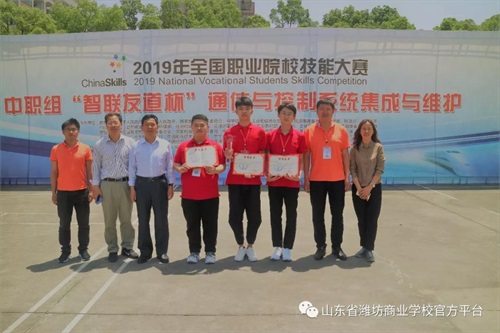 5月20日,2019年全國職業(yè)院校技能大賽中職組“智聯(lián)友道杯”通信與控制系統(tǒng)集成與維護賽項在江蘇省宜興中等專業(yè)學校落下帷幕,山東省濰坊商業(yè)學校代表隊以全國冠軍的好成績喜獲一等獎。這是學校2019年全國職業(yè)院校技能大賽的首枚金牌!至此山東省濰坊商業(yè)學校已獲得全國職業(yè)院校技能大賽金牌65枚。