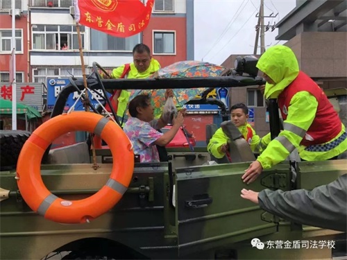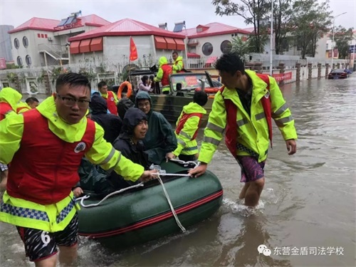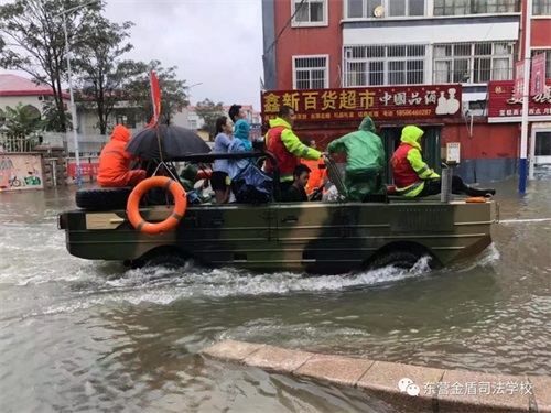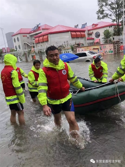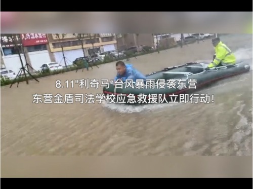 8月11日,在第9號(hào)臺(tái)風(fēng)“利奇馬”的影響下,東營已經(jīng)歷了長達(dá)一天一夜的暴雨侵襲,部分主干路及居民小區(qū)都被積水浸泡,有居民被困家中,暴雨的肆虐嚴(yán)重威脅了人們的生命和財(cái)產(chǎn)安全。東營金盾司法學(xué)校參與救援。