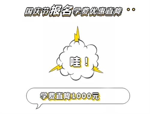 優(yōu)惠時(shí)間:從2019年9月18日——10月30日期間報(bào)名繳費(fèi)的學(xué)員均可減免學(xué)費(fèi)1000元。