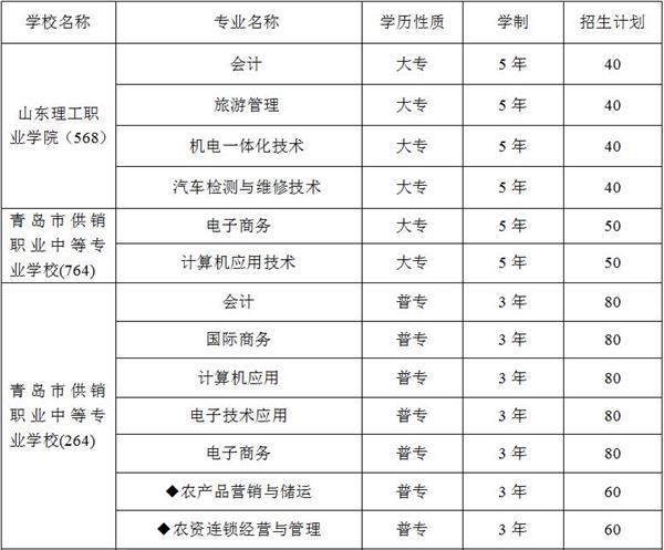 青島市供銷職業(yè)中等專業(yè)學(xué)校、青島市經(jīng)濟(jì)貿(mào)易技術(shù)學(xué)校,始建于1985年,是經(jīng)山東省教育廳、山東省人社廳批準(zhǔn)成立的全日制公辦學(xué)校,學(xué)校設(shè)有大專、中專、技工等多種學(xué)歷教育辦學(xué)層次,是山東理工職業(yè)學(xué)院五年制大專青島校區(qū)、山東省省級中等職業(yè)示范學(xué)校、山東省重點(diǎn)技工學(xué)校,是電子商務(wù)創(chuàng)業(yè)技能培訓(xùn)基地、青島市國家技能鑒定所、國家特有工種職業(yè)技能鑒定站。