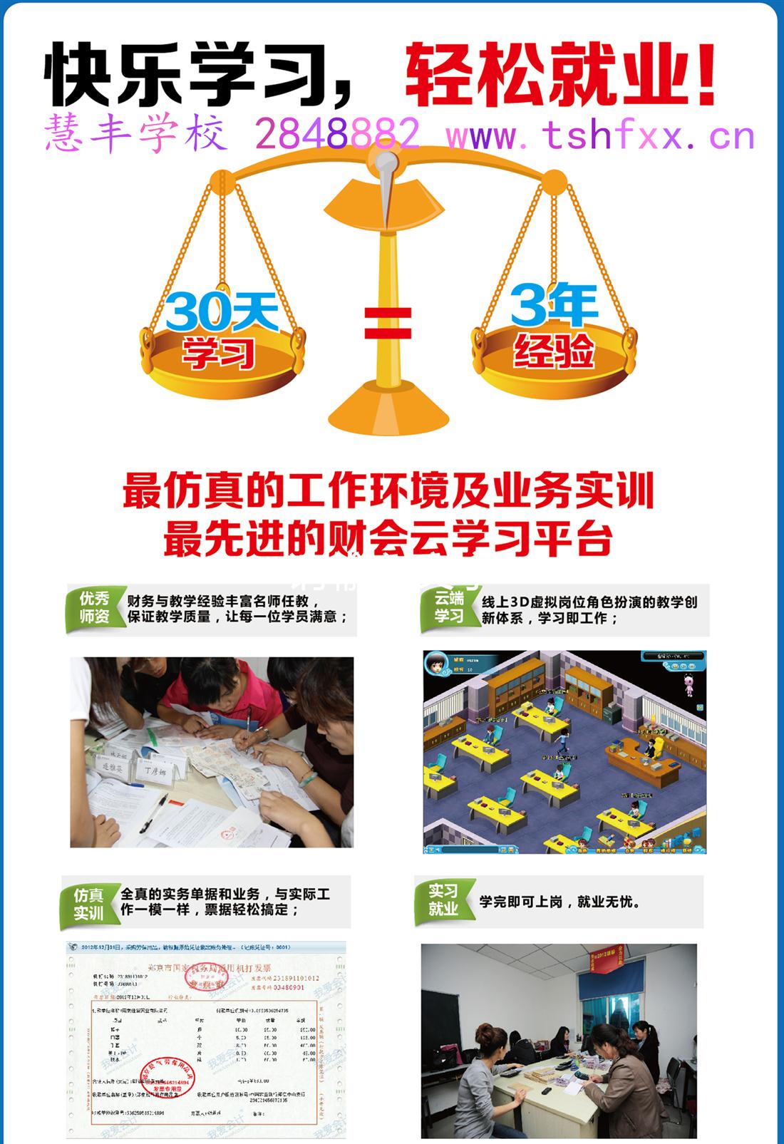 唐山慧豐會(huì)計(jì)學(xué)校創(chuàng)建于1988年,是經(jīng)唐山市教育局批準(zhǔn)成立的正規(guī)辦學(xué)單位,是專門從事各類會(huì)計(jì)培訓(xùn)和成人大學(xué)專科、本科教育的培訓(xùn)學(xué)校。 在政府和各界朋友的支持下,唐山慧豐會(huì)計(jì)學(xué)校為社會(huì)培訓(xùn)了10萬多名各類復(fù)合型人才學(xué)員,遍布唐山各行各業(yè),形成了自己的特色,自己的品牌,并多次被評(píng)為優(yōu)秀辦學(xué)單位,我們致力于成為中國優(yōu)秀的培訓(xùn)機(jī)構(gòu),為社會(huì)培養(yǎng)更多的人才。 唐山慧豐會(huì)計(jì)學(xué)校師資力量雄厚,教師對(duì)學(xué)員認(rèn)真負(fù)責(zé),嚴(yán)于職守,在會(huì)計(jì)實(shí)際做賬班培訓(xùn),會(huì)計(jì)證,助理會(huì)計(jì)師,會(huì)計(jì)師的教學(xué)中,專門針對(duì)學(xué)員本身和工作實(shí)際情況,采用靈活有效合理的方法進(jìn)行教學(xué)。 隨著當(dāng)今社會(huì)經(jīng)濟(jì)..