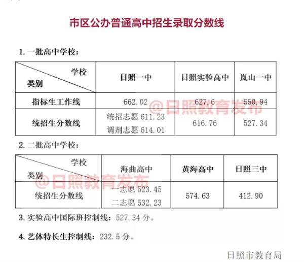 日照市2019年市區(qū)公辦普通高中招生錄取分?jǐn)?shù)線公布