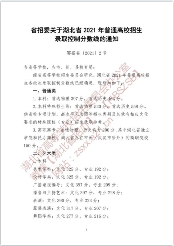 • 2021湖北高考錄取分?jǐn)?shù)線