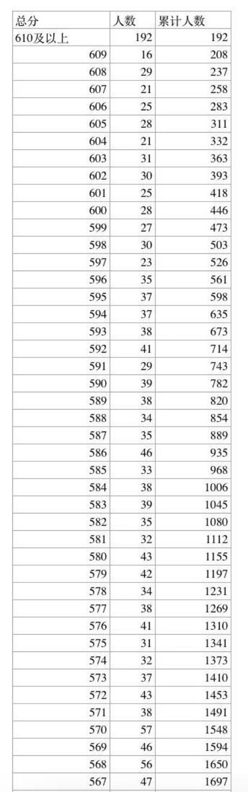 2023年中考一分一檔表出爐! 點擊下方圖片放大查看