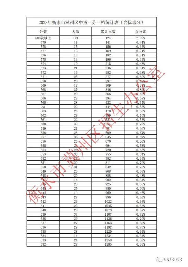 • 2023年衡水市冀州區(qū)中考一分一檔統(tǒng)計表(含優(yōu)惠分)