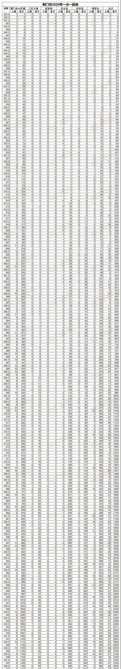 2020荊門中考中考成績一分一檔表公布