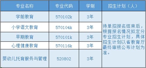 學校名稱:滄州幼兒師范高等??茖W校 辦學類型:公辦全日制普通院校 學校代碼:14259 辦學層次:???一、單招專業(yè): 學校單獨招生專業(yè)和招生計劃詳見