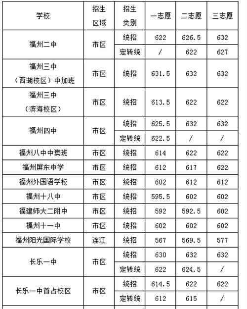 福州普高錄取分?jǐn)?shù)線2020 福州二中、四中、屏東出線