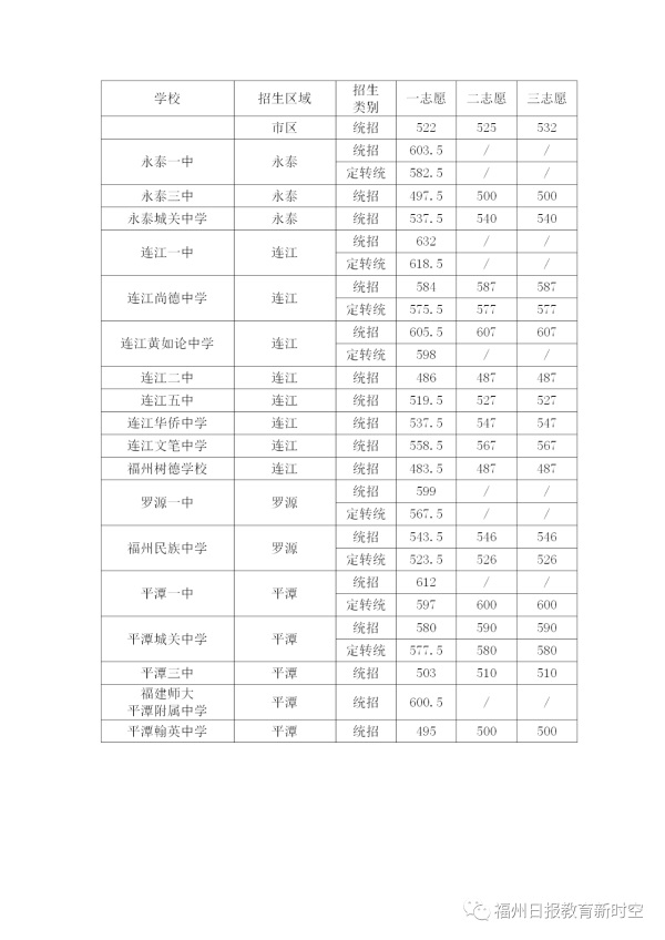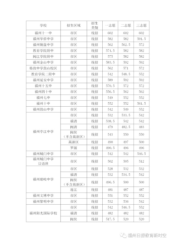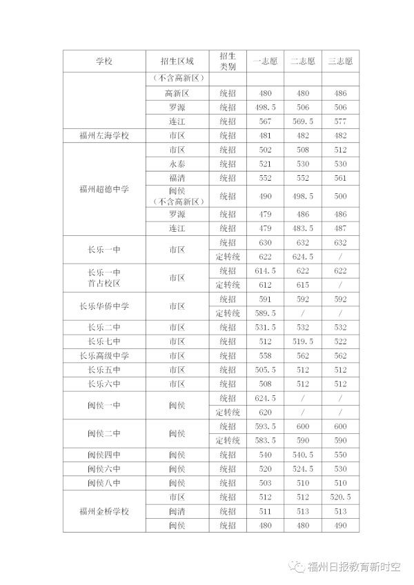 2020年福建福州中考普高學校最低錄取分數(shù)線公布