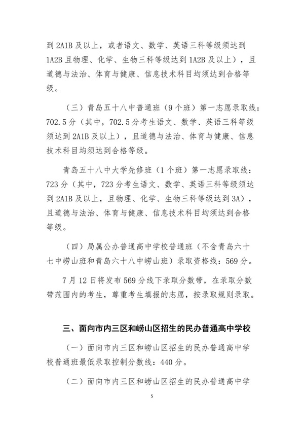 2019年青島市初中學業(yè)水平考試(以下簡稱中考)成績分數(shù)線公布:公辦普高569分,二中702分!與去年相比普高分數(shù)線低40分