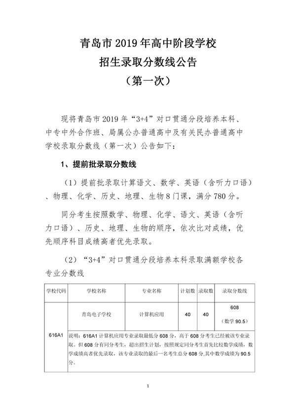 2019年山東青島中考高中學校錄取分數(shù)線公布了,具體內(nèi)容如下所示: