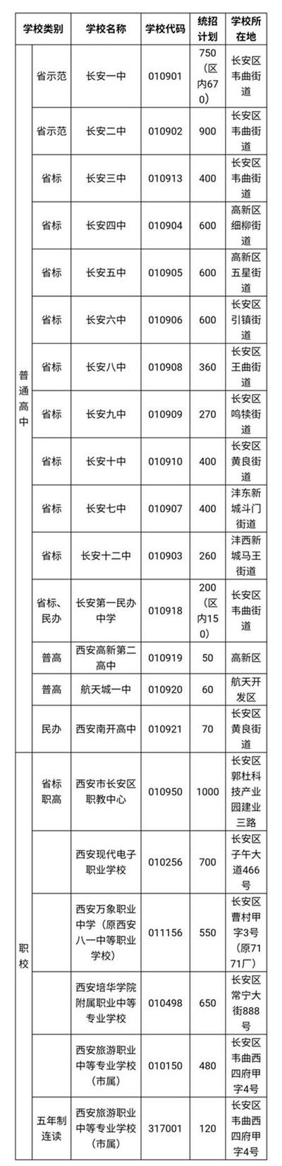 長(zhǎng)安區(qū)各校招生計(jì)劃