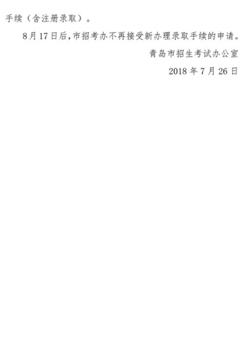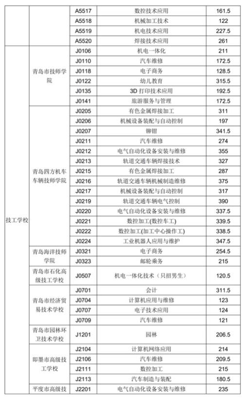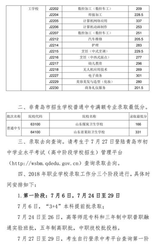 2018年青島市中專、中職招生錄取分?jǐn)?shù)線公告