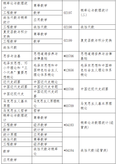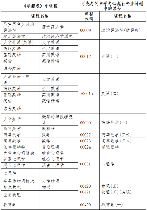 注:1.標(biāo)記“#”的課程《學(xué)籍表》中的考查課也可免考;2.標(biāo)記“*”的課程專(zhuān)科《學(xué)籍表》課程不予免考;