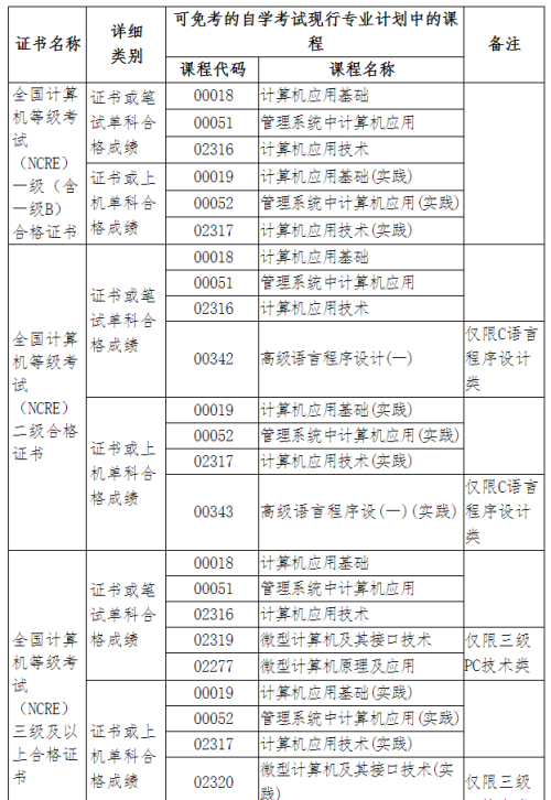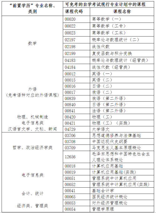 3.表格中“可免考的自學(xué)考試現(xiàn)行專(zhuān)業(yè)計(jì)劃中的課程”如有新調(diào)整或變化時(shí),按最新的專(zhuān)業(yè)計(jì)劃執(zhí)行。