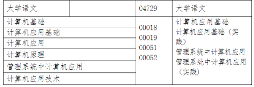 (三)“前置學(xué)歷”《學(xué)籍表》中課程與可免考的自學(xué)考試現(xiàn)行專(zhuān)業(yè)計(jì)劃中的課程對(duì)照表: